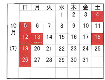 10月営業日のお知らせ(九州事業部)