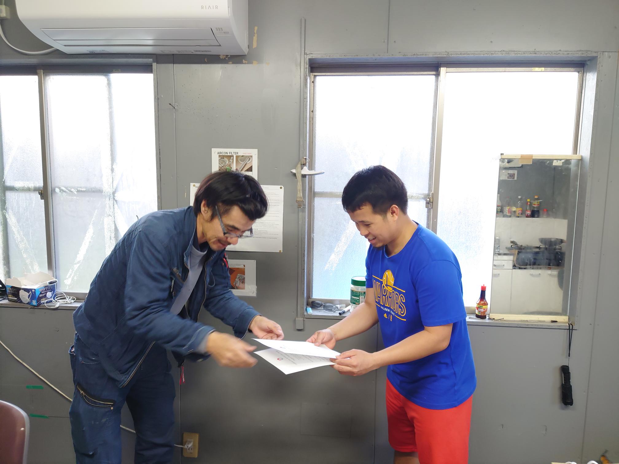 実習生のベンジャミンさんが5年の実習期間を終え、帰国となりました。