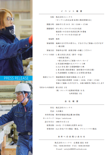 「オープン入社式&第36期上期決算報告会のお知らせ」